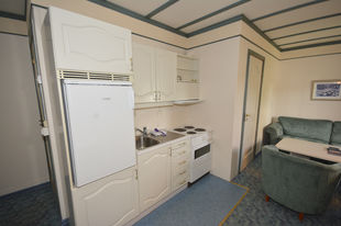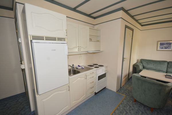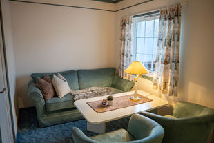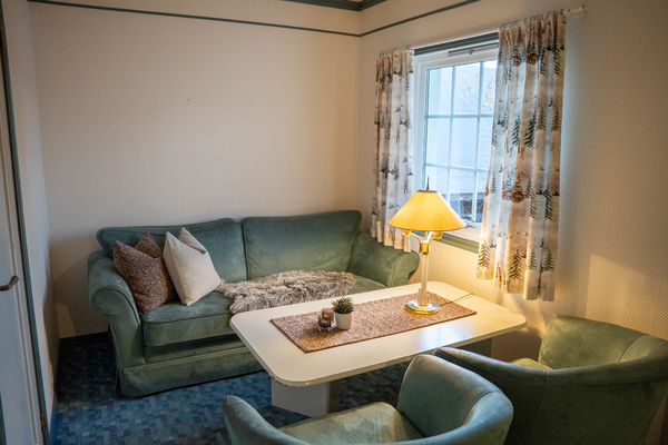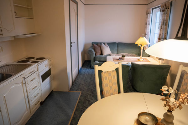 Leiligheten ligger i første etasje i leilighetsbygget, med inngang fra parkeringsplassen.